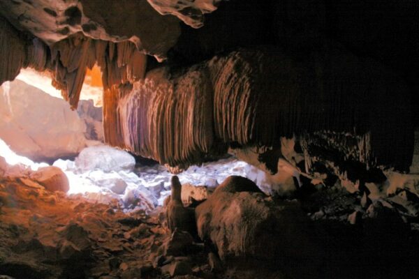 “Um mundo que não vê luz solar. Formas esculpidas pela natureza, espetáculo que vale a pena conhecer.” Assim se pode definir a Caverna Escaroba, uma caverna de formação rochosa calcária, com aproximadamente 200 metros de extensão, cortada por um córrego que desaparece por um sumidouro e ressurge do outro lado.